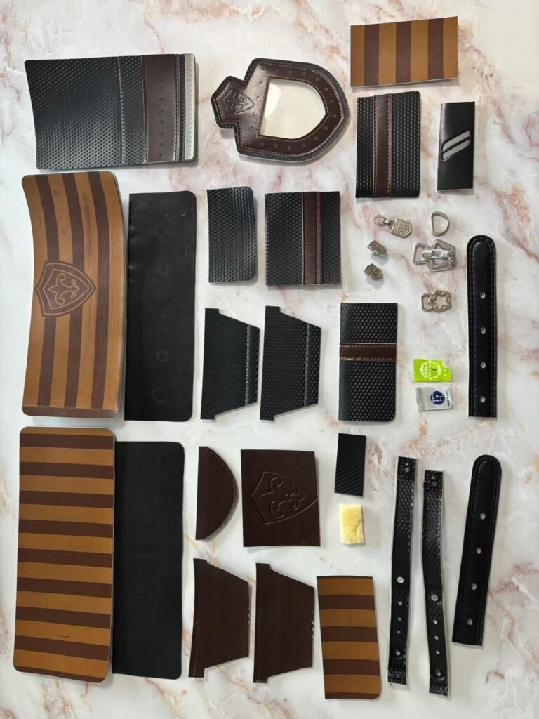 革の面積や素材の状態に応じて、できる限り多くのアイテムを制作します。